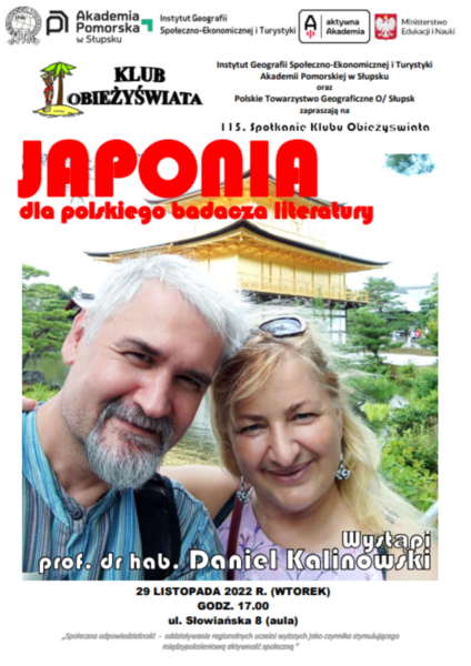 Naszym gościem będzie Pan Profesor Daniel Kalinowski. Kilka słów od Prelegenta: „Spotkanie z Japonią opowiadane z perspektywy polskiego literaturoznawcy, profesora zwyczajnego nauk humanistycznych w Instytucie Filologii AP, który przebywał w Osace na stażu dydaktycznym. Oprócz zajęć na kampusie, stałym elementem stażu były wypady kulturoznawcze, w ramach których odwiedzone zostały niektóre symboliczne miejsca Japonii. Pobyt w Osace ugruntował badania buddologiczne